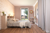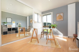 L’étage abrite deux chambres mansardées de 12 m² chacune ainsi qu’une salle d’eau.