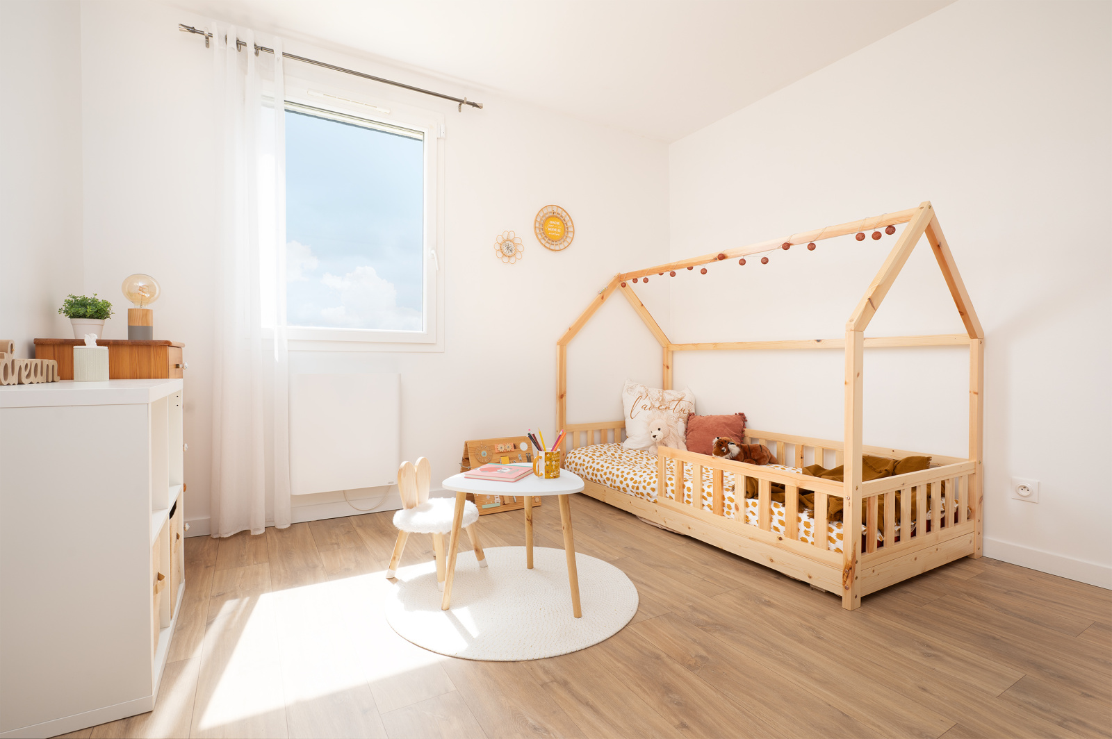Côté nuit, la maison propose quatre chambres ainsi qu’une salle d’eau avec douche à l’italienne et double vasque et un toilette indépendant offrant une configuration idéale pour une vie de famille.