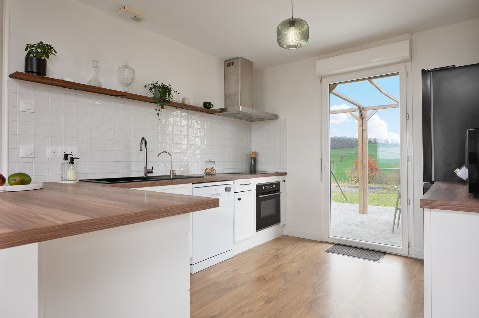 Implantée dans un cadre verdoyant, cette maison individuelle de plain-pied, construite en 2008, offre un confort de vie particulièrement apprécié au quotidien. Dès l’entrée, vous découvrez une belle pièce de vie lumineuse d’environ 46 m², composée d’un séjour spacieux et d’une cuisine équipée ouverte, formant un espace convivial et chaleureux, véritable cœur de la maison. Un cellier/buanderie attenant vient compléter cet ensemble pour plus de praticité.